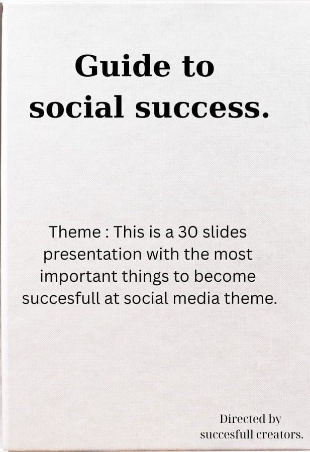A full guide with 30 slides with the most important things to become succesfull at social media. Get it now at the price of 7€.